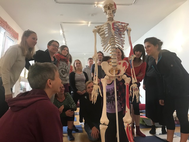 Welchen Einfluss haben die Füße auf die Schultern? Wie ist der Zusammenhang zwischen Lendenwirbelsäule und Kopfhaltung? Wie hängen Atmung und Entspannung zusammen? Unser Anatomie- & Physiologie-Unterricht findet in der Praxis statt damit Du „vor Ort“ lernen kannst. Auf diese Weise erlebst Du anatomische und physiologische Zusammenhänge hautnah und spürst am eigenen Körper, welch große Auswirkungen bereits kleine Veränderungen in Haltung oder Atmung haben. Dadurch entwickelt sich ein praktisches Verständnis von Yoga-Anatomie und Physiologie. Du lernst anhand von Bildern, Illustrationen und Texten das, was Du über den menschlichen Körper im Yoga wissen musst. Wenn Du später selber unterrichtest, wirst Du aus eigener Erfahrung sprechen.