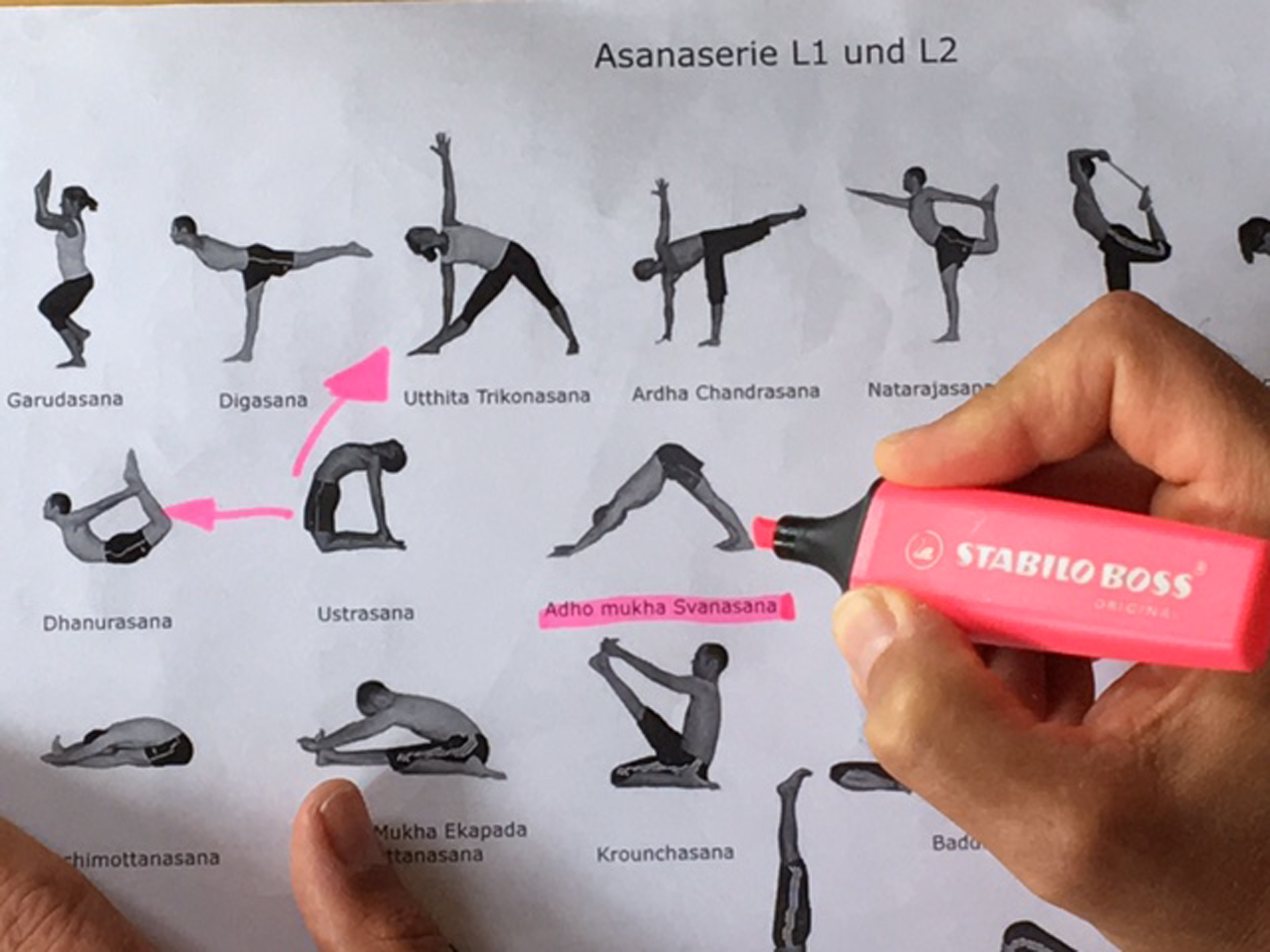 - Yogapositionen, Pranayama, Entspannung in sinnvollen Schritten anleiten