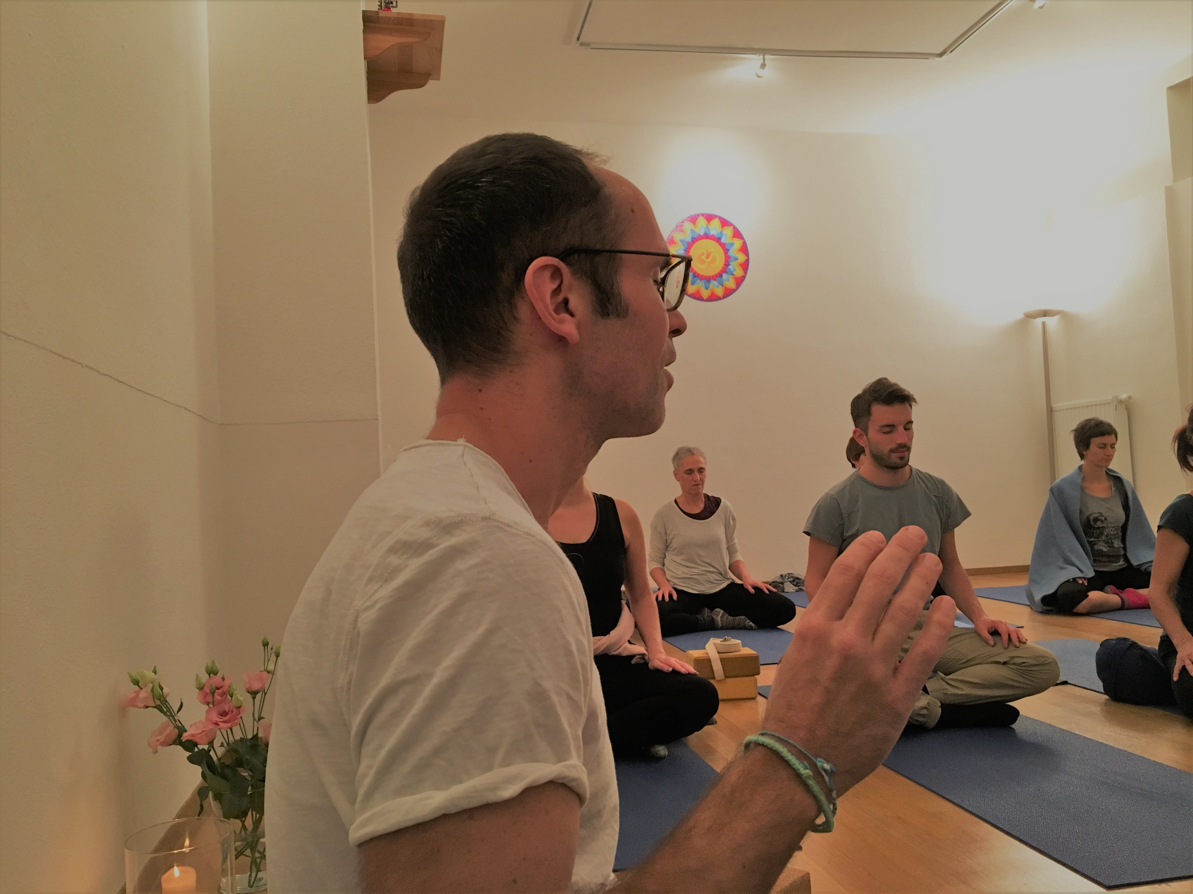 Wir singen Mantras und lernen die richtige Aussprache der Sanskrit Begriffe. Inhalte: u.a. Die Yoga-Sutras von Patanjali, die Hatha-Yoga-Pradipika, die Upanishaden und die Vijyana Bhairava und buddhistische Einflüsse. Eine Literaturliste findest Du hier.